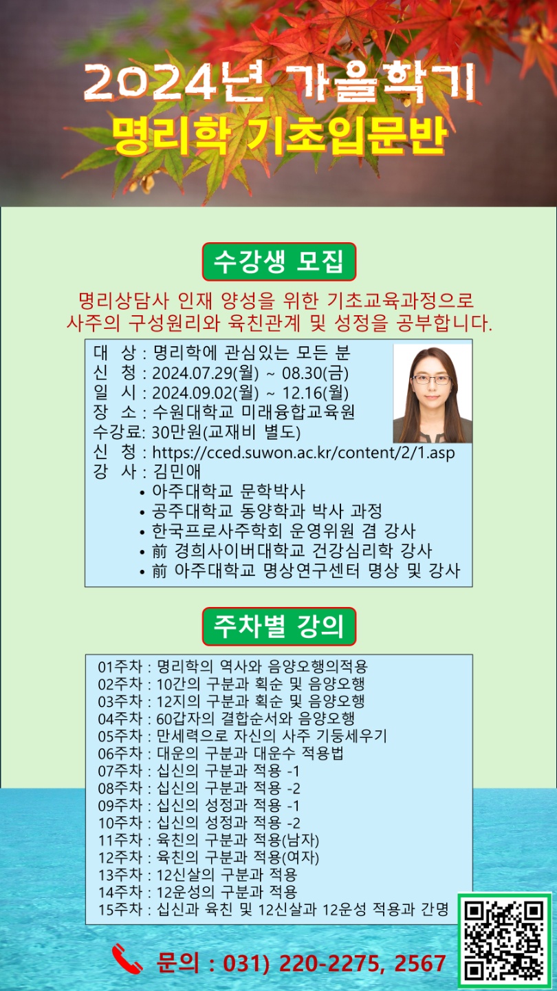 ~8.30모집)수원대 미래융합교육원 명리학 기초, 중급 수강생 모집