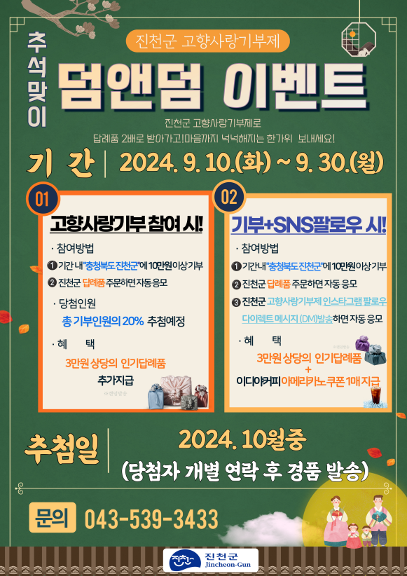 고향사랑기부제 홍보합니다! (10만원 기부하면 연말정산 시 10만원 그대로 돌려받고 추가로 9만원 이상의 혜택까지)