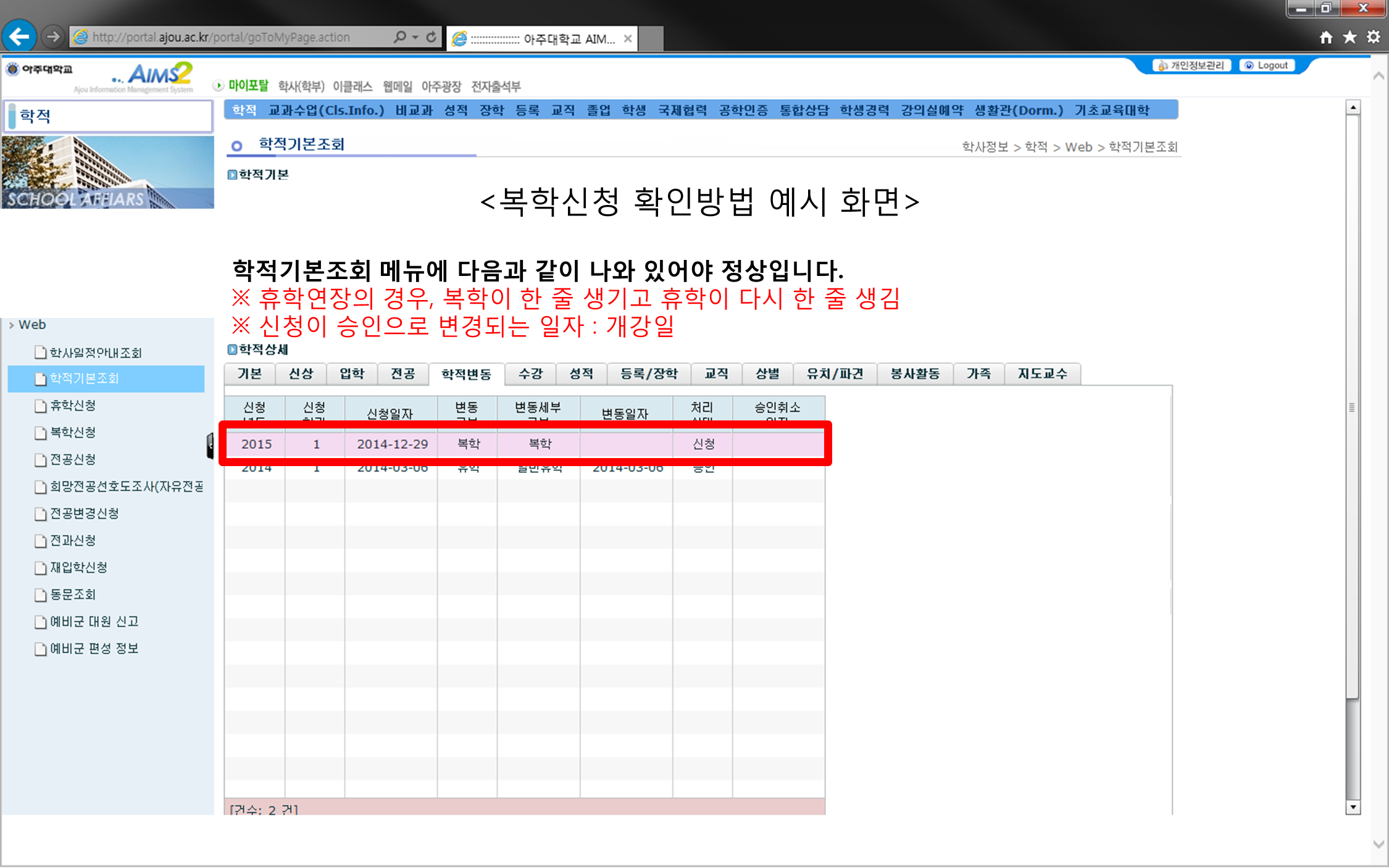 (재공지)[학부] 2015-2학기 휴학, 복학, 휴학연장 신청 안내