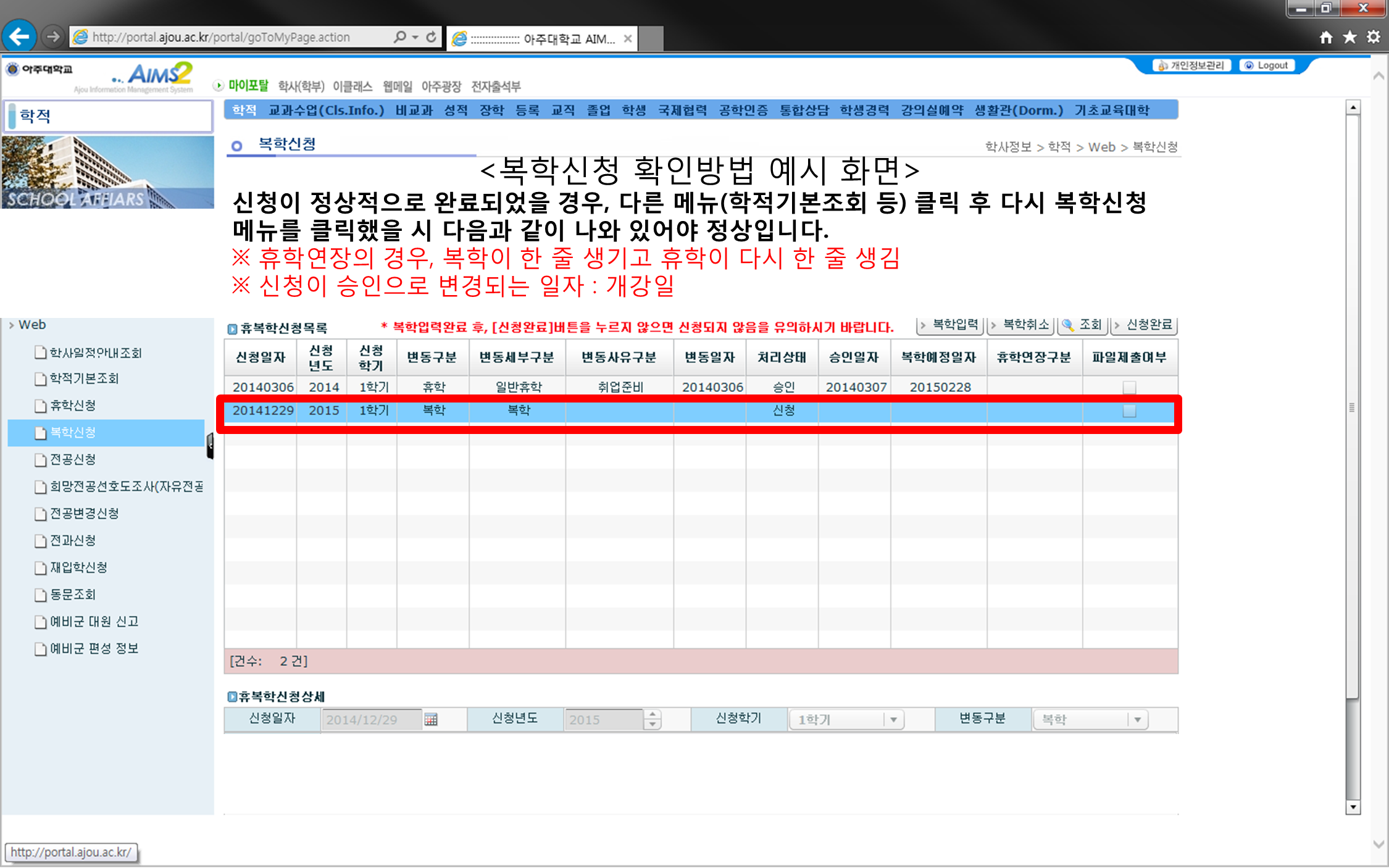 [학부] 2015-2학기 휴학, 복학, 휴학연장 신청 안내