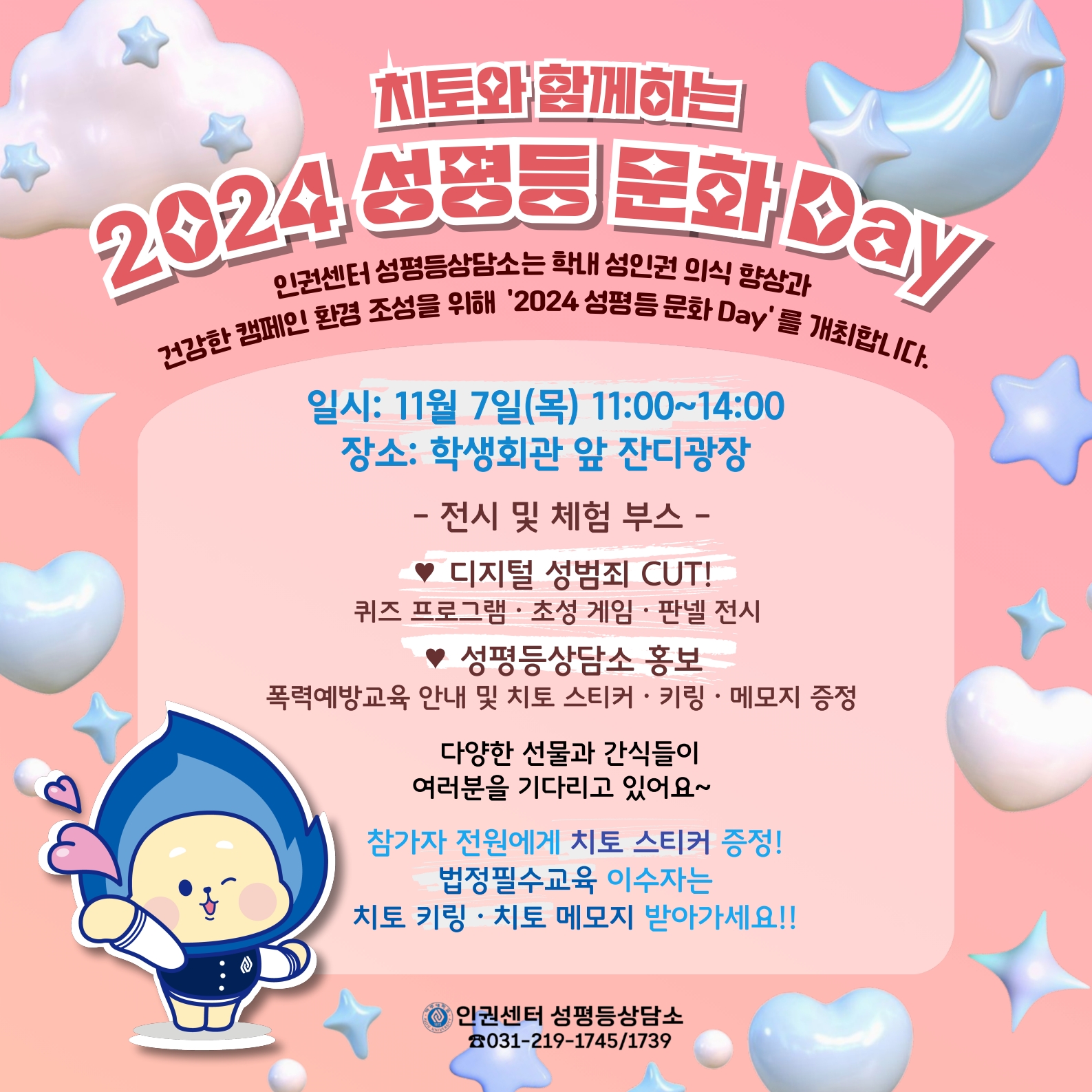 | 22712 | 행사 | 인권센터 성평등상담소 | 2024-11-07 |
