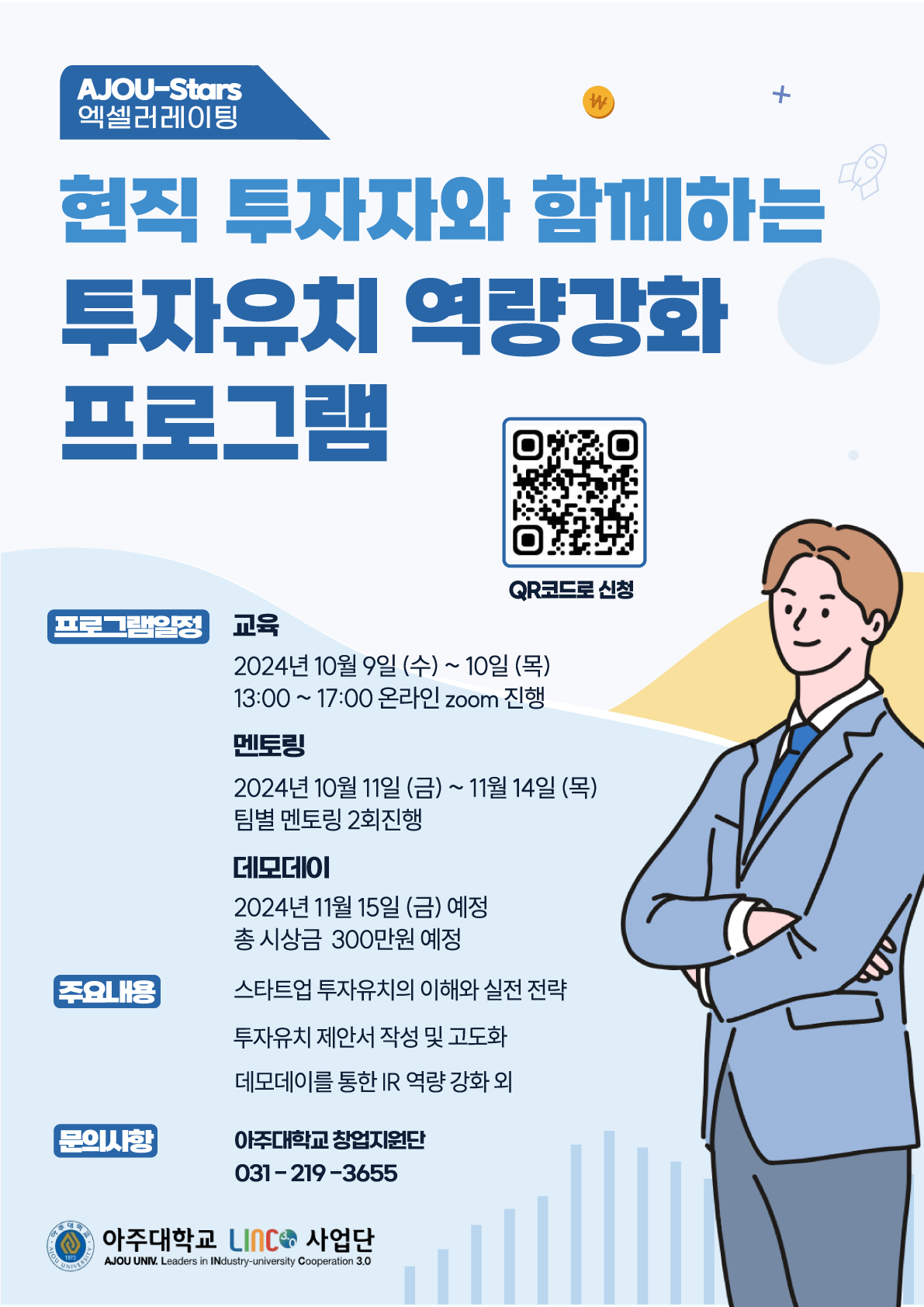 [마감][LINC3.0] AJOU 투자유치 역량강화 아카데미 참가자 모집(교육,멘토링,데모데이) ~ 10.07.(월)