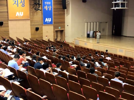 박형주 총장이 '경기도 국공립고등학교장회 하계 워크숍'에서 특강했다.행사는 지난 7월 18일 우리 학교 율곡관 강당에서 열렸다.이날 워크숍은 경기도 내 국공립 고등학교의 교장 선생님 100여명이 참석한 가운데 진행됐다. 워크숍은 을 주제로 개최됐다.박형주 총장은 환영사를 겸한 특강에서 미래사회와 대학 교육에 대해 강연했다.박 총장은 "학교가 단순한 지식 전수 기관이 아니라 학습법을 배우는 곳으로 변화해야 한다"며 "단순 반복학습을 벗어나 문제 해결 능력과 통찰력을 기르기 위한 노력이 필요하다"고 강조했다.