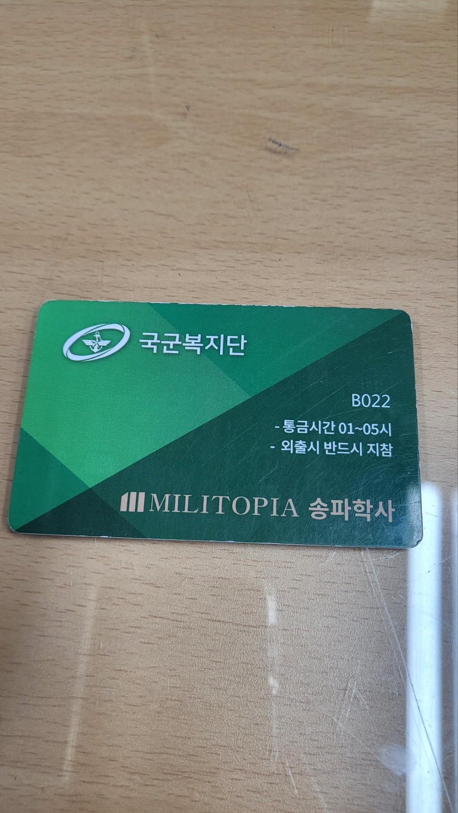 국군복지단 카드를 보관하고 있습니다.