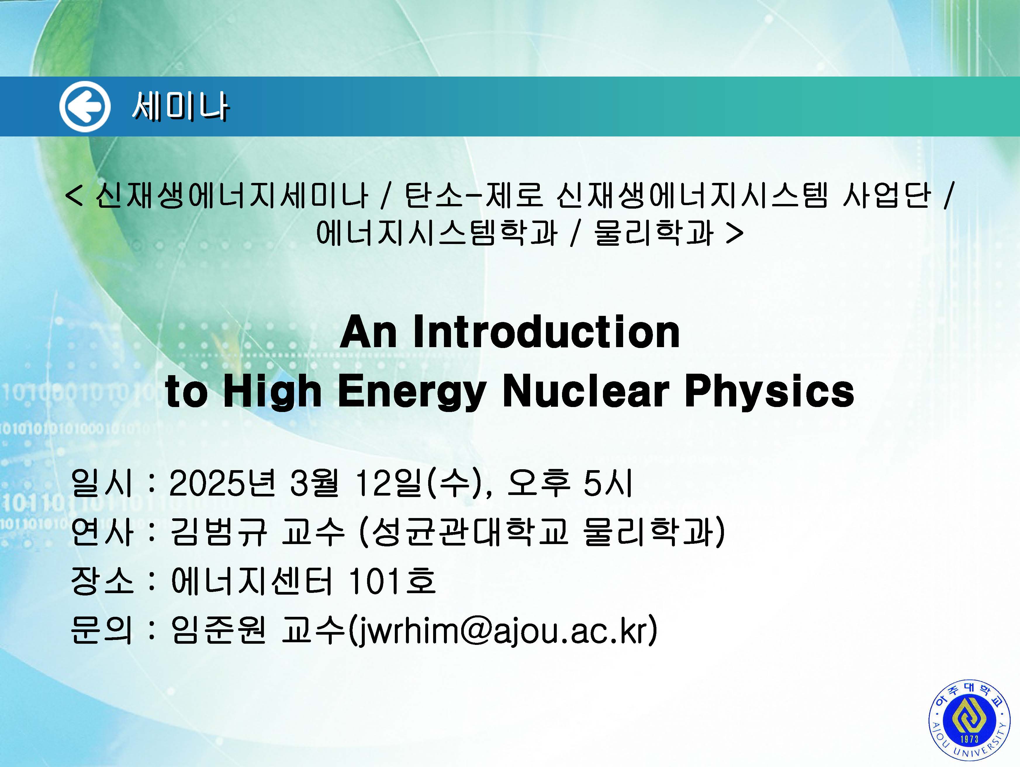 | 1719 | 세미나/포럼 | 교내 | 2025-03-06 | ||