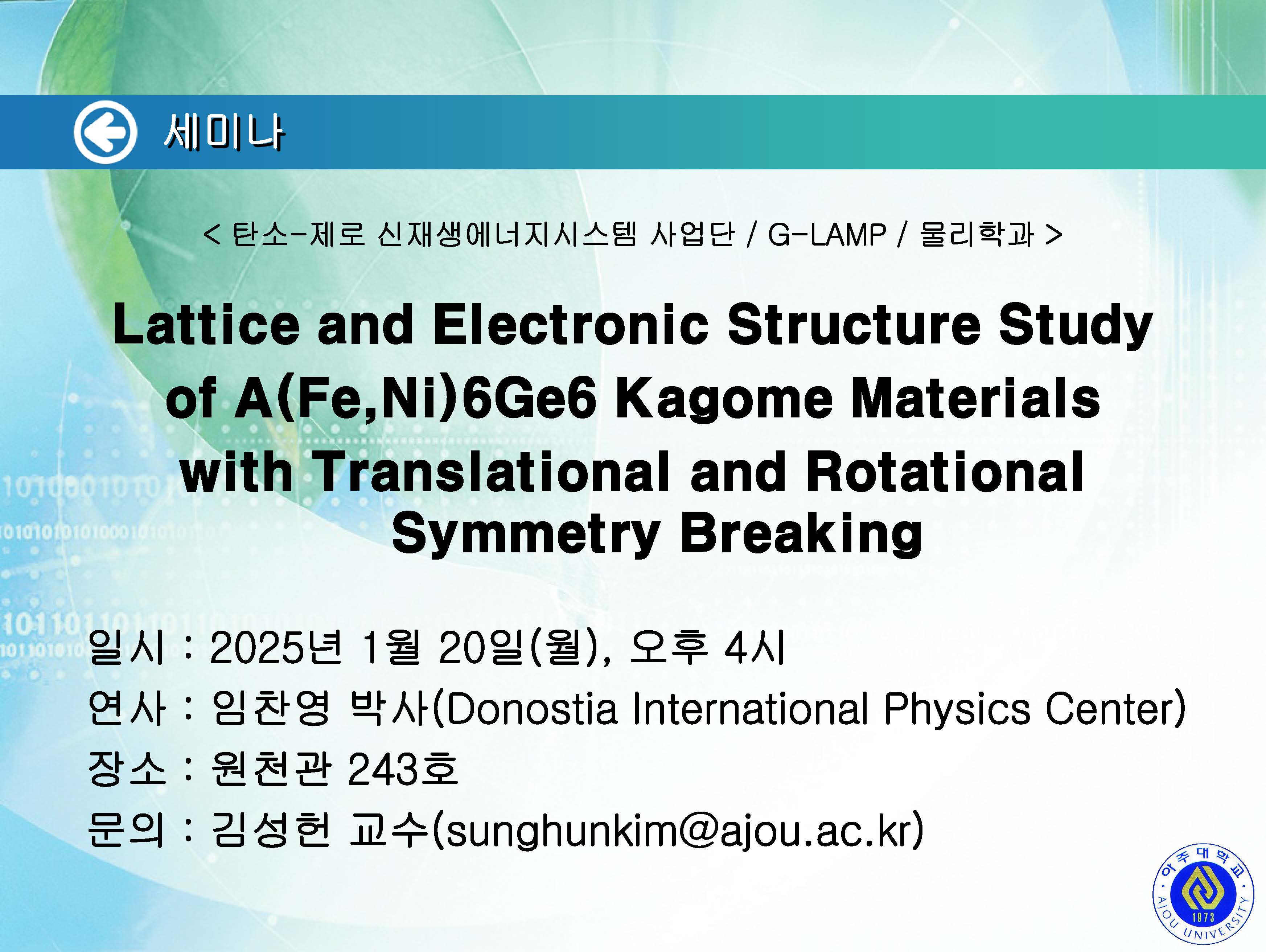 | 1707 | 세미나/포럼 | 교내 | 2025-01-17 |